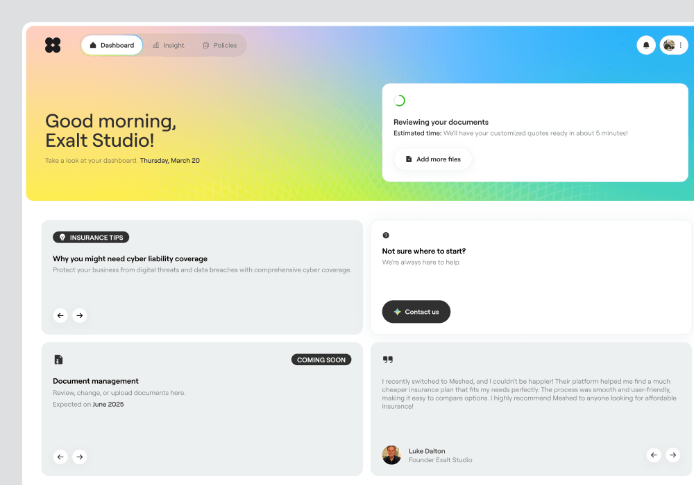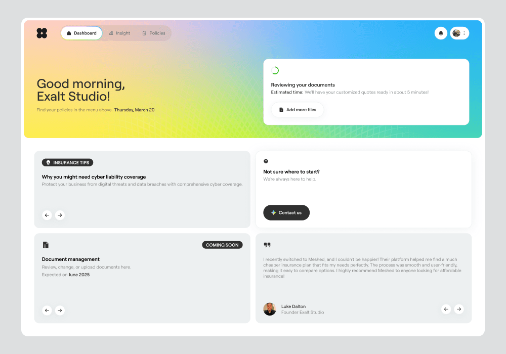 “We discovered Exalt Studio after seeing a product they built and were immediately impressed by their clean, thoughtful UI. They quickly understood our insurance product challenges and delivered practical, creative solutions with more options than expected, which really shaped our thinking.”